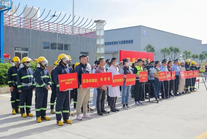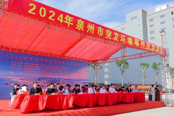 、惠安县人民政府、泉惠石化工业园区管委会联合主办的2024年泉州市突发环境事件应急演练在惠安县泉惠石化工业园区邦丽达(福建)新材料股份有限公司成功举行。