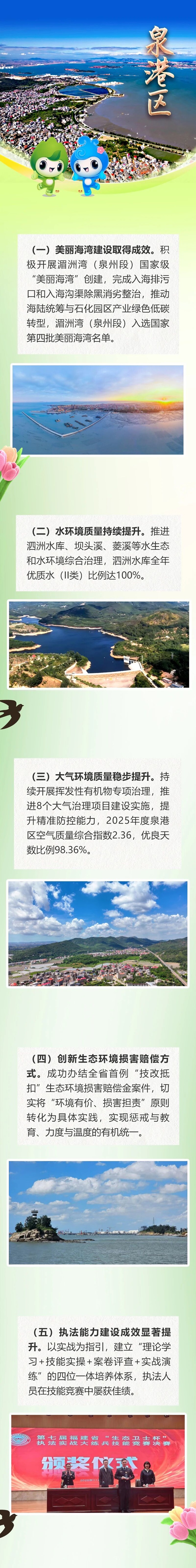 2025年,泉州市生态环境系统多项工作走在全国和全省前列。而这串闪亮的成绩,是由各个县(市、区)用行动书写的“绿色答卷”。为此,我们特别策划《生态答卷 数说“城”绩》——“家园画卷”专栏,将各县域的特色亮点浓缩成一张张海报。为您“数”说家园生态变化,一起共建美丽泉州!