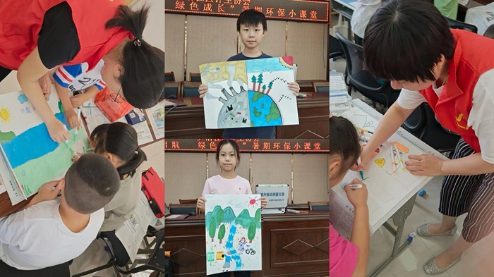 最后,学生们发挥丰富的想象力,用灵巧的小手纷纷绘出一幅幅生动有趣的生态环保主题绘画。