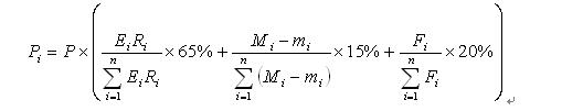 流域保护补偿资金的50%按流域水量水质、用水总量控制以及生态保护因子等3项因素占比切块分配给两江上游县(市、区),用数学公式表示为: