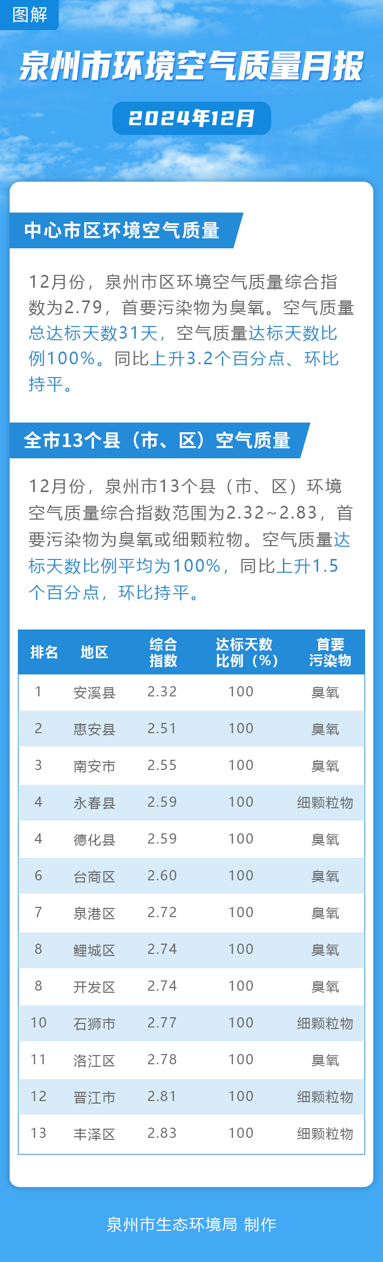 图解 | 泉州市环境空气质量月报(2024年12月)