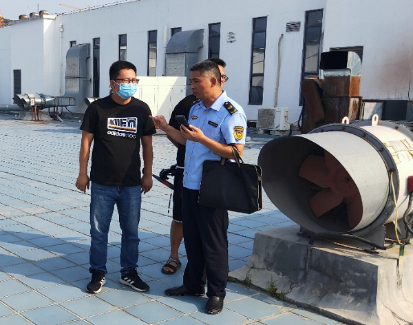 9月13日,县环委办约谈该商场相关管理人员,要求其督促该餐饮店限期整治油烟机噪声扰民问题。9月26日,该餐饮店油烟机通过加装新的管道,管道内壁加设防火隔音棉,并做向下弯曲处理,有效减少了噪声排放。