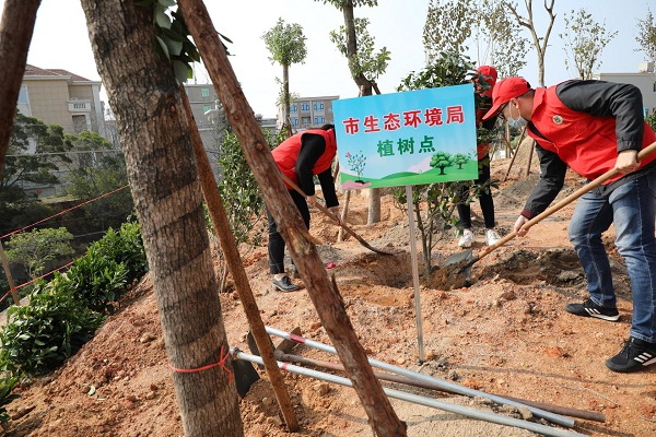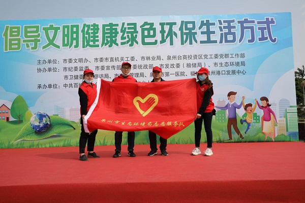 组织局机关、市环境保护综合执法支队及环科所志愿服务队到泉州台商投资区百崎回族乡举行参加由市委市直机关工委、市委文明办、市林业局、泉州台商投资区党群工作部等单位主办的2021年泉州市“倡导文明健康绿色环保生活方式”主题宣传暨市直机关“携手绿化美化 共建美丽泉州”志愿服务活动。