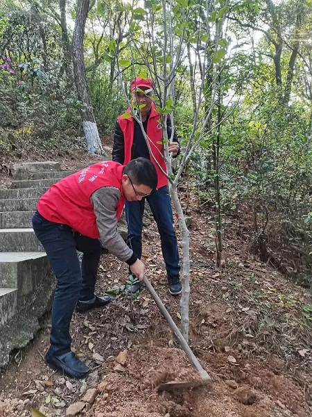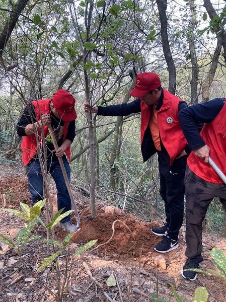 积极组织志愿者前往清源山参加义务植树活动。