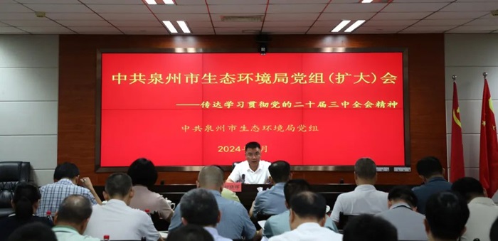 会议强调,全市生态环境系统全体党员领导干部要深刻领悟“两个确立”的决定性意义,增强“四个意识”、坚定“四个自信”、做到“两个维护”,把学习好、宣传好、贯彻好党的二十届三中全会精神作为当前和今后一个时期的重要政治任务,切实把思想和行动统一到全会精神上来,深入学习贯彻习近平总书记关于全面深化改革的一系列新思想、新观点、新论断,增强改革意识和担当精神,自觉把改革摆在更加突出位置,坚定不移深化生态文明体制改革,健全生态环境治理体系,不断提升抓改革的能力和本领,推动学习贯彻全会精神走深走实,在加快推进人与自然和谐共生的美丽中国中展现泉州作为、贡献泉州力量。