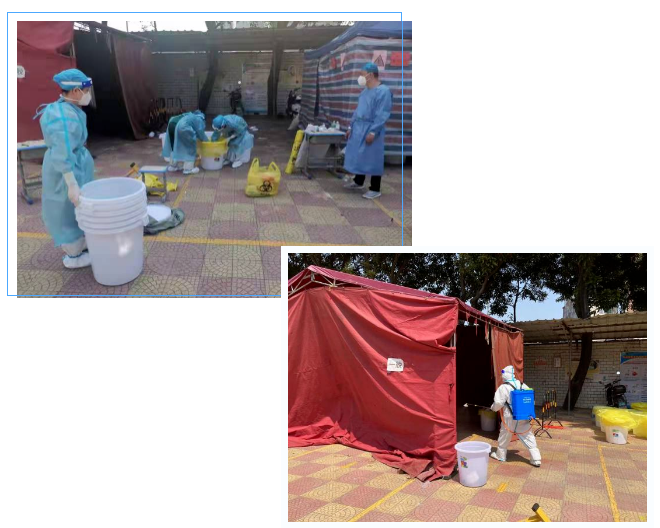 每次入户核酸检测结束,工作人员完成个人防护用品脱卸后,及时组织人员将废弃垃圾打包转运,并使用含氯消毒剂对场地及周围环境进行重点消杀,消除病毒传播、细菌滋生的风险。