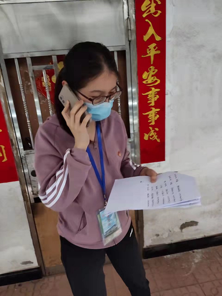 自宝山社区后坑自然村(居民小组)抗疫指挥部成立后,吕扬莉作为第一组负责人,第一时间带领队员走街串巷,深入辖区居民家中开展入户调查工作。在入户调查的这些日子里,吕扬莉和庄小彬结合实际,合理规划时间、路线图,真正做到排查工作不漏一户、不漏一人。
